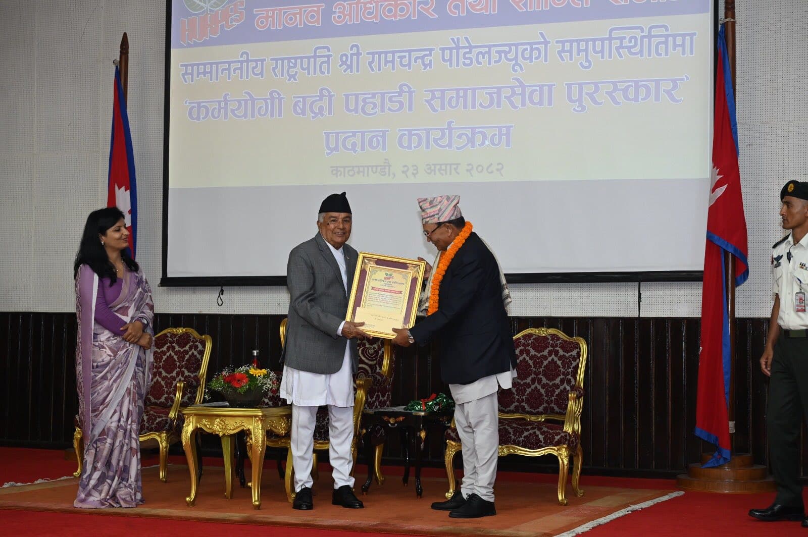 सम्माननीय राष्ट्रपति रामचन्द्र पौडेलज्यूद्वारा कर्मयोगी बद्री पहाडी समाजसेवा पुरस्कार प्रदान २०८२